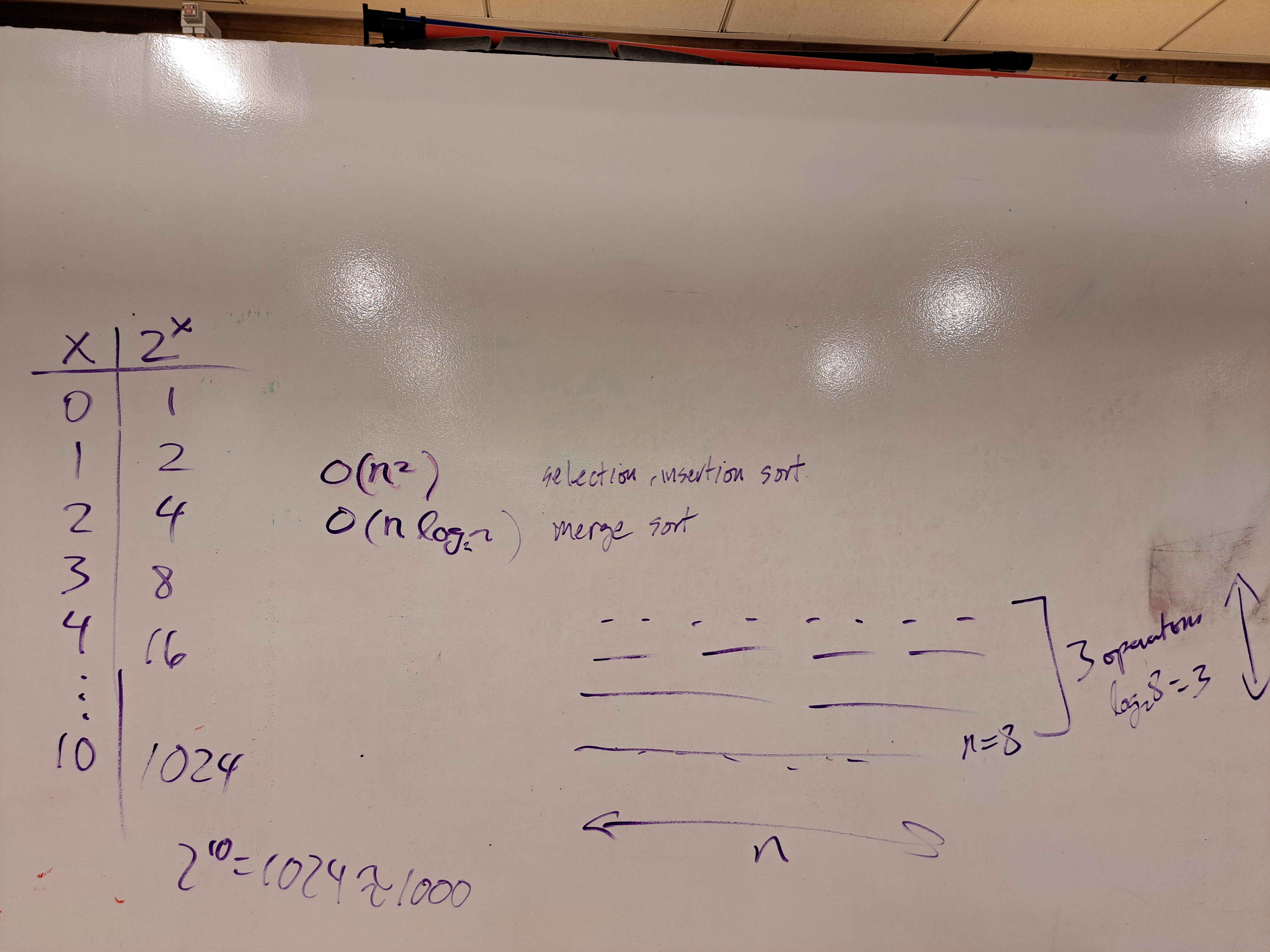 Unit 14 - Algorithms# Topics# algorithm analysis searching linear search binary search \(o(n)\) vs. \(o(\log n)\) sorting insertion sort selection sort bubble sort merge sort \(o(n^2)\) vs. \(o(n \log n)\) Notes from the lesson#